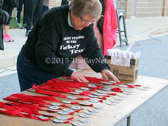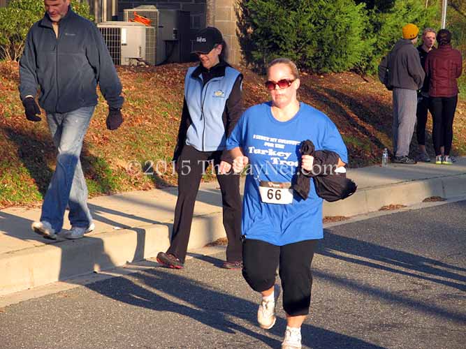 The trotters were turned loose around 7 a.m., making the trek south on Prince Frederick Boulevard, turning around and then heading north to the Stoakley Road intersection. Many of the participants were garbed in Thanksgiving Day attire. Some wore hats that resembled cooked turkeys, others braids, headdresses and Indian feathers. Even Santa Claus took a victory lap on the course.