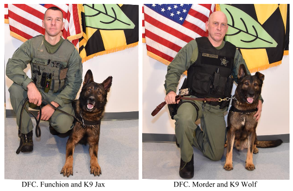 Prince Frederick, MD – Calvert County Sheriff’s Office K9’s Jax & Wolf will receive bullet and stab protective vests thanks to a charitable donation from non-profit organization Vested Interest in K9s, Inc. K9 Jax & Wolf’s vests are sponsored by Friends of Dogwood Acres Pet Retreat of Davidsonville, MD and will be embroidered with the sentiment “Gifted by Friends of Dogwood Acres Pet Retreat”. Delivery is expected within eight to ten weeks.