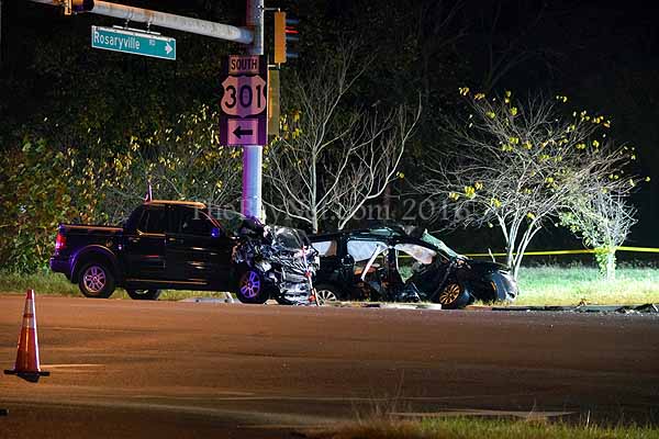 According to witnesses at the scene, the Chrysler failed to stop for a red light and entered the intersection.ย The Chrysler then struck the Ford in the southbound lanes of US 301. Both vehicles came to rest partially on the shoulder of US 301 and Rosaryville Road. Wood was transported to Prince Georgeโs Hospital. Madison was transported to Medstar Southern Maryland Hospital for minor injuries. The right front passenger of the Chrysler, Denise Thompson, 40 of Upper Marlboro, was declared deceased at the scene by emergency medical services and a forensic investigator from the medical examinerโs office. Collision reconstruction specialists responded to the scene for further investigation. There appears to be no signs of alcohol or other impairment by either driver.