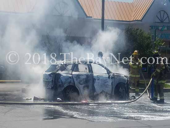 Update:ย ย According to sources on the scene, the occupant of the vehicle has sustained burns on 30% of their body.ย An additional subject, an employee of Bed, Bath, and Beyond was transported to a local hospital for minor injuries.